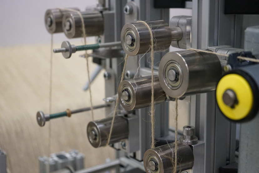 des Materialsystems auf ein Naturfasergarn in Kombination mit einem neuen Matrixmaterial wird die Produktion von Bauteilen möglich, in denen stabile Faserverbundwerkstoffe mit den Eigenschaften der