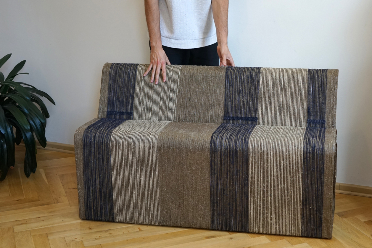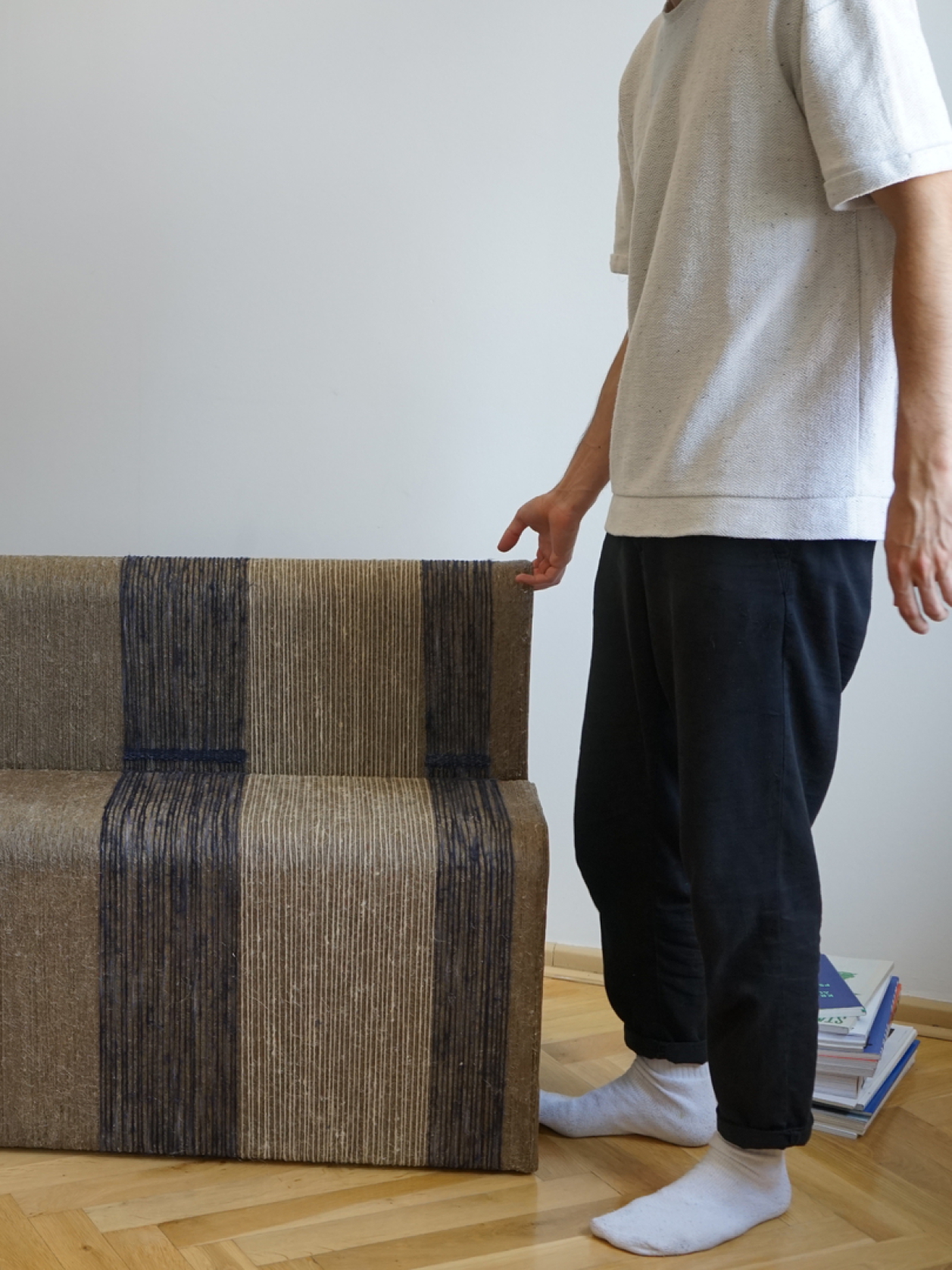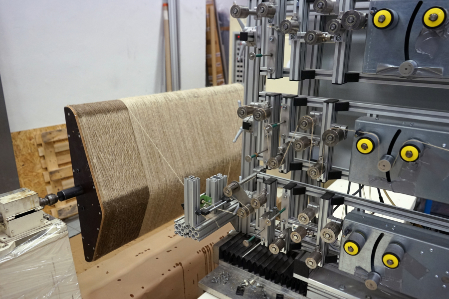 CNC-gesteuerten Wickelmaschine aus Hanfgarn hergestellt und mit einem Matrixmaterial ausgehärtet. Das so entstandene Objekt schreibt kein festes Nutzungsszenario vor, vielmehr kann man damit